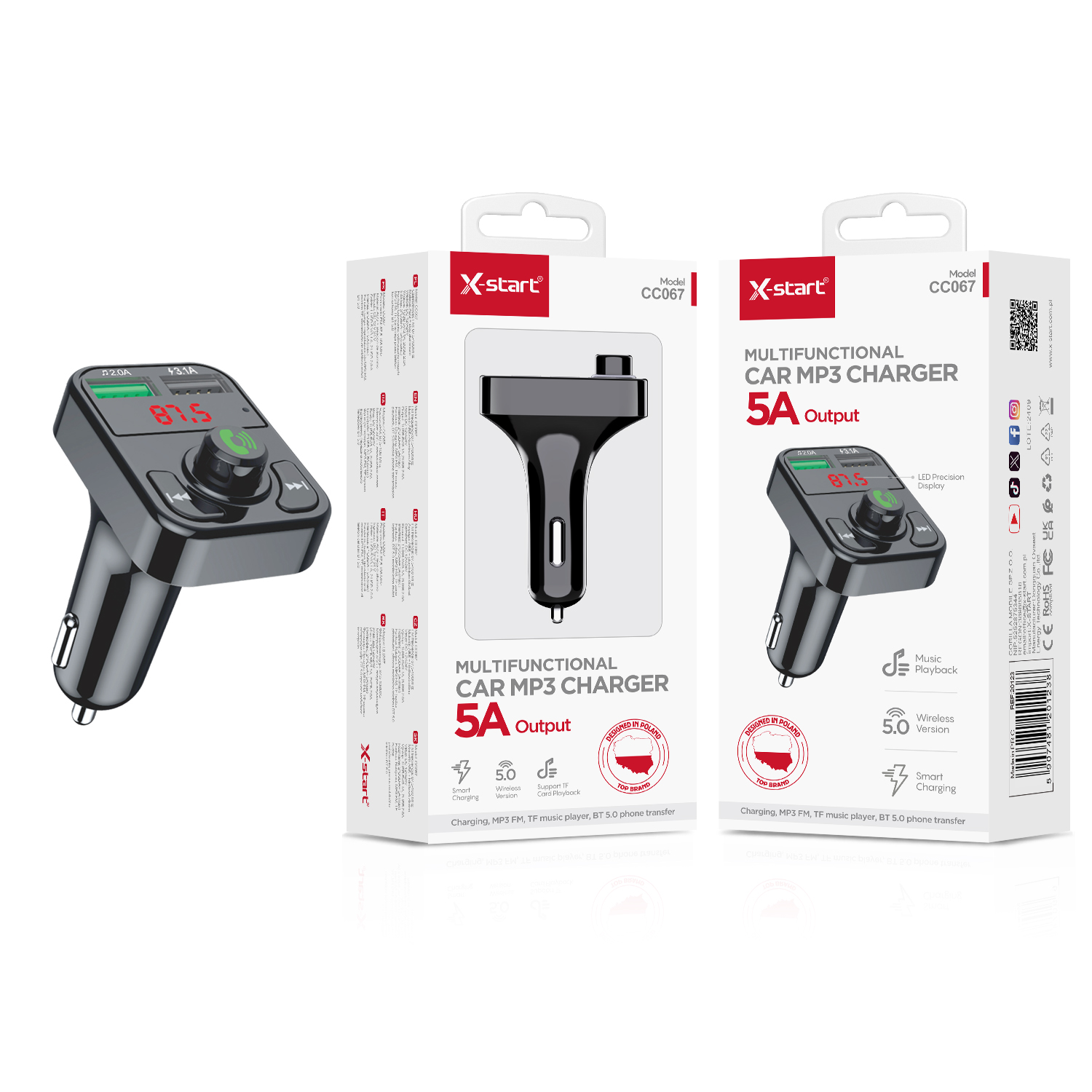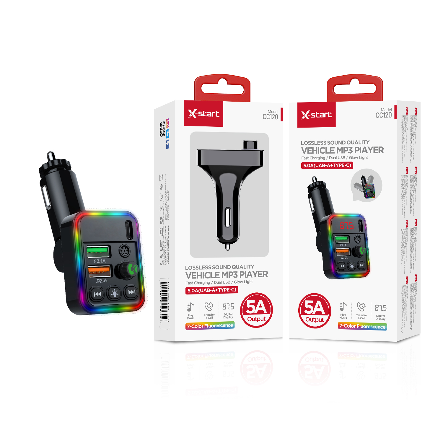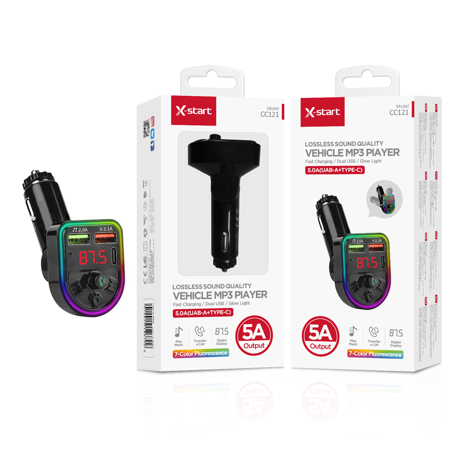 X-start CC121 Black Car Bluetooth MP3 Player (PC+ABS) with dual USB ports and dual outputs