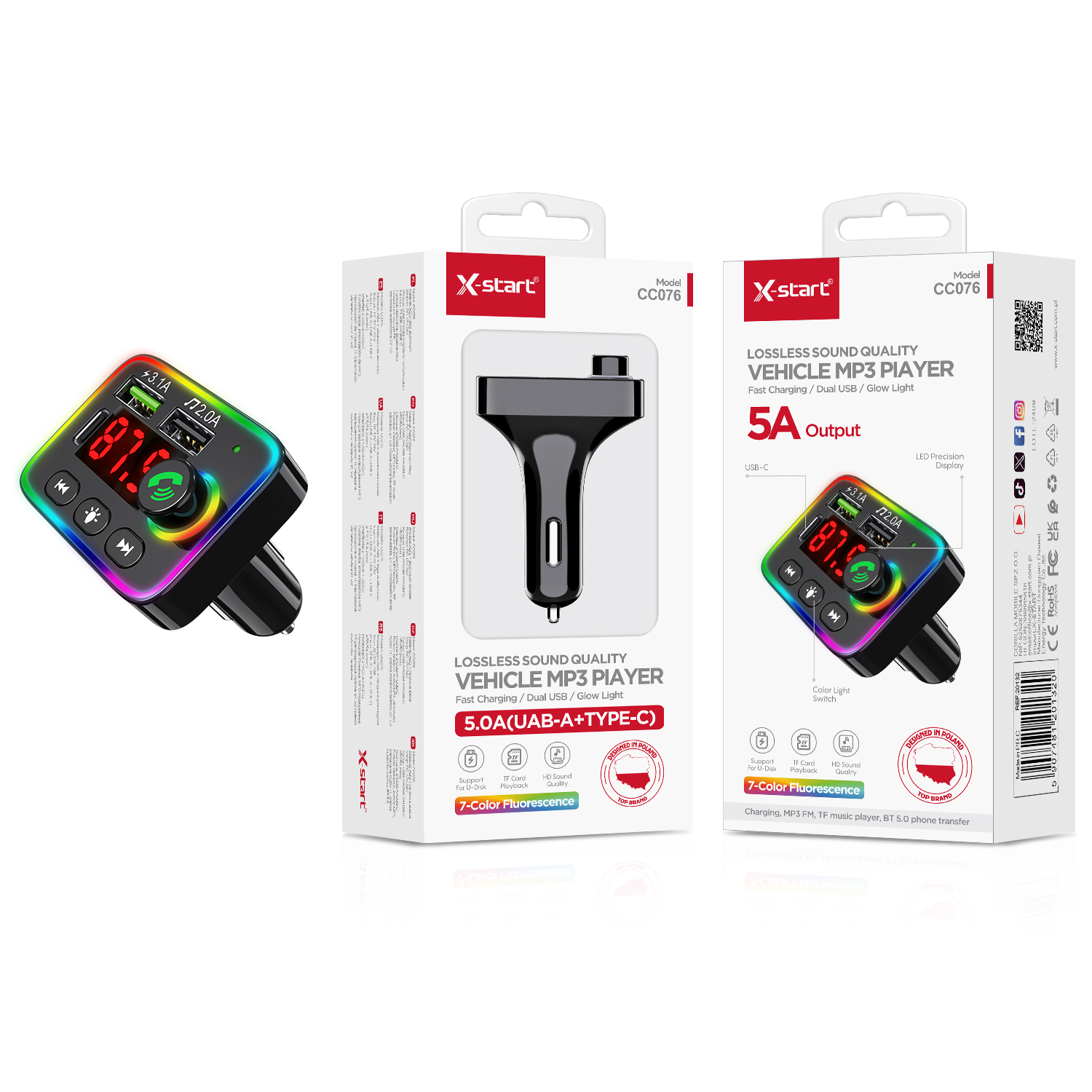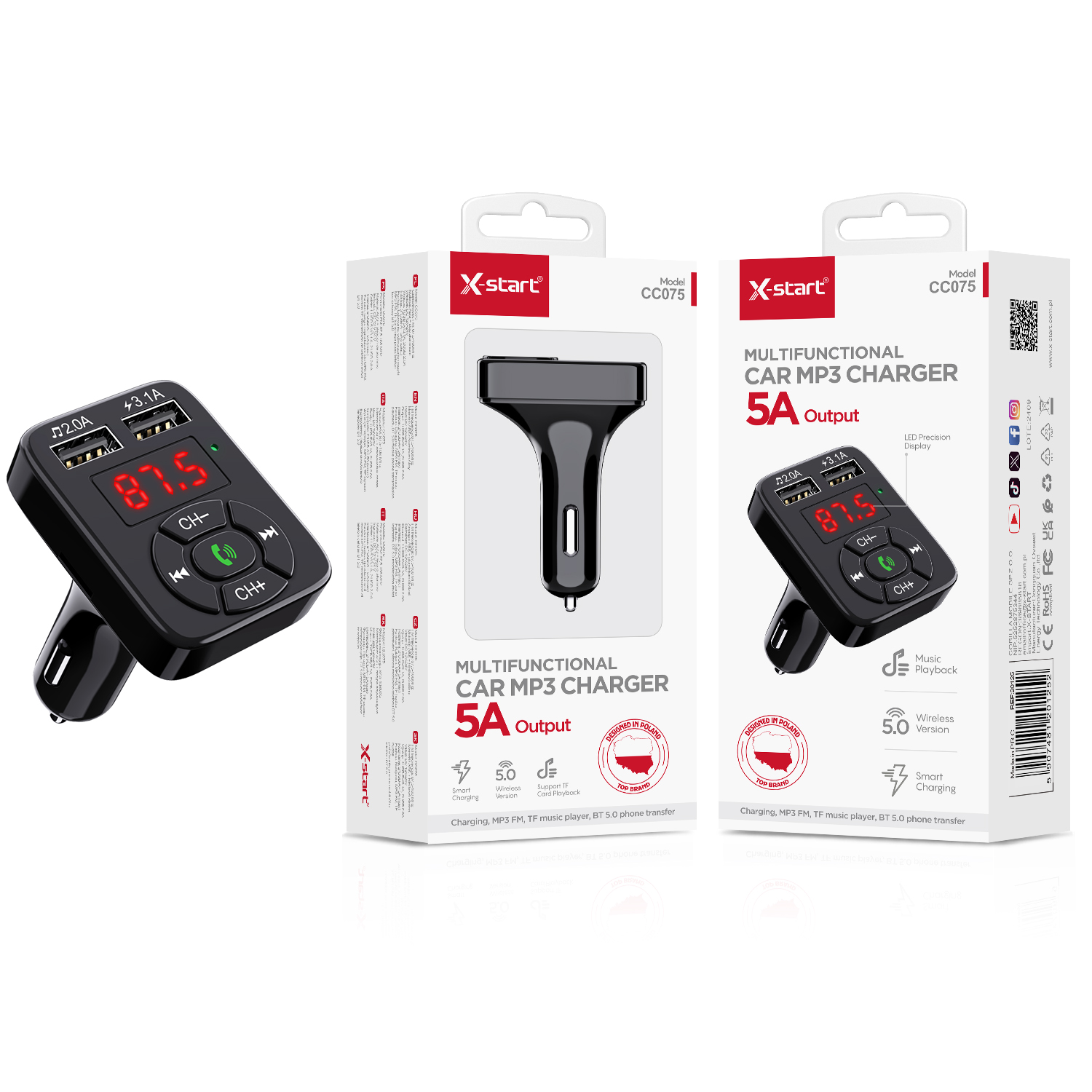 X-start CC085 Black Car Bluetooth MP3 Player (PC+ABS) with dual USB ports and dual outputs