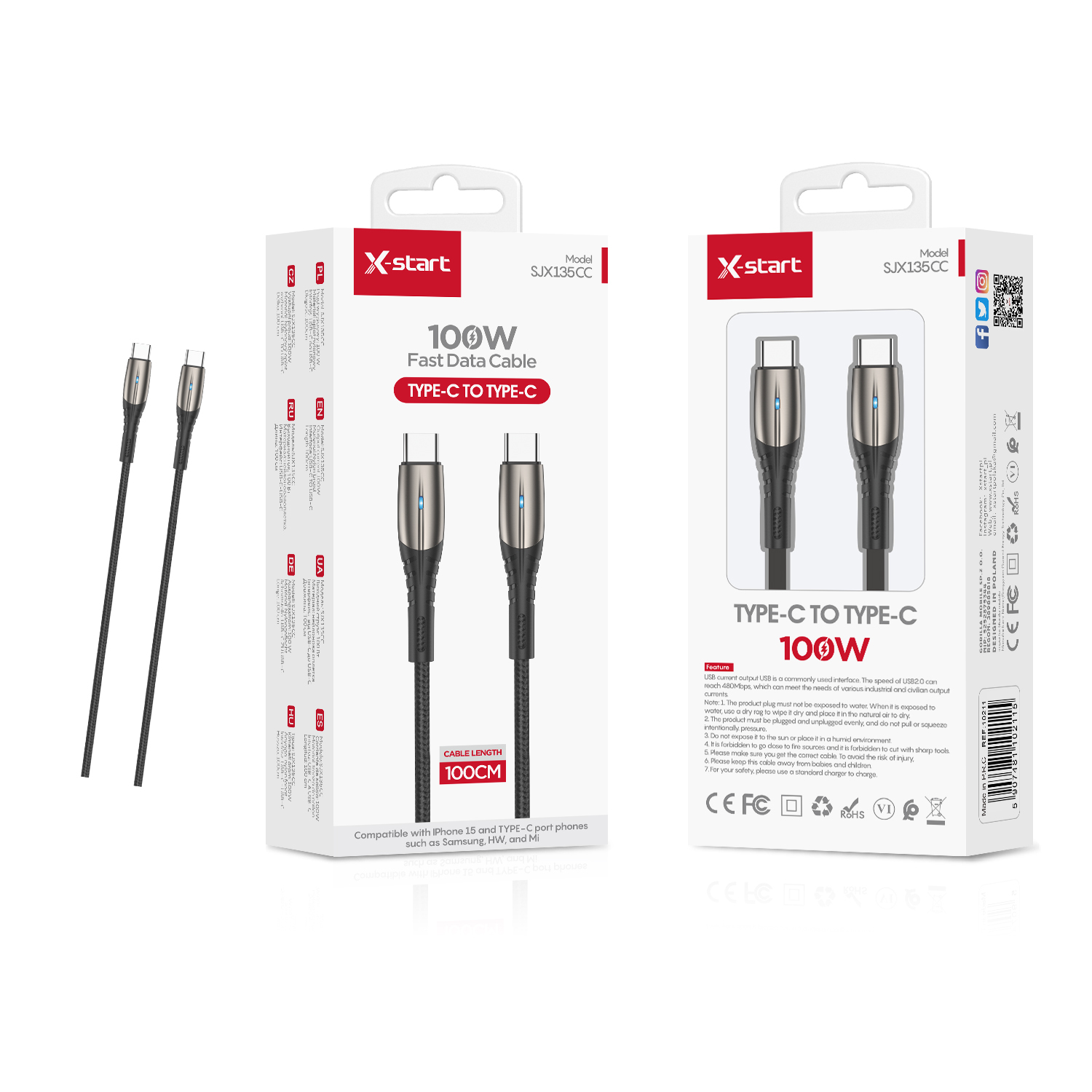 SJX135-136-137 100W Fast Charging Cable – Lightning / Type-C / Micro USB