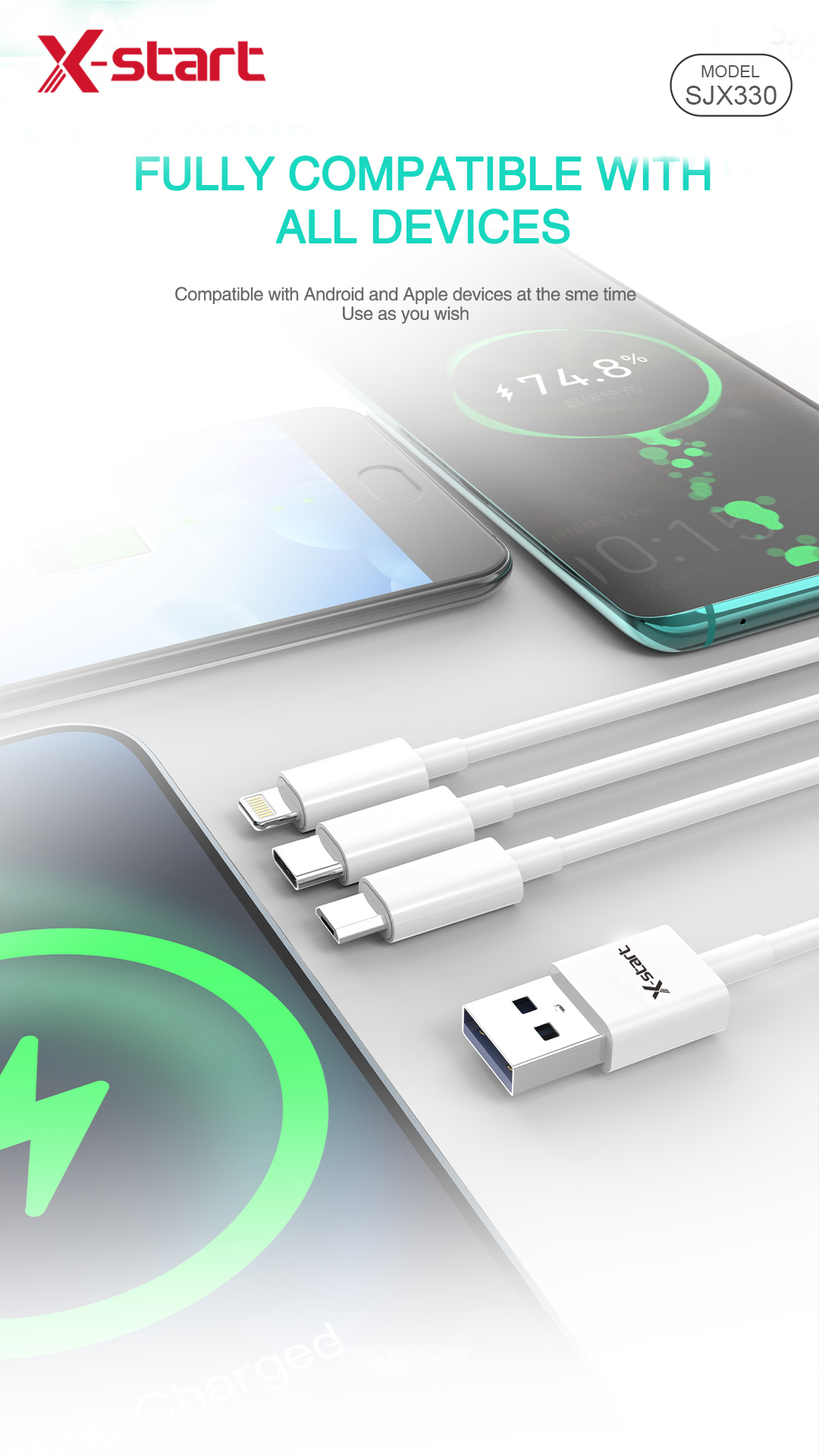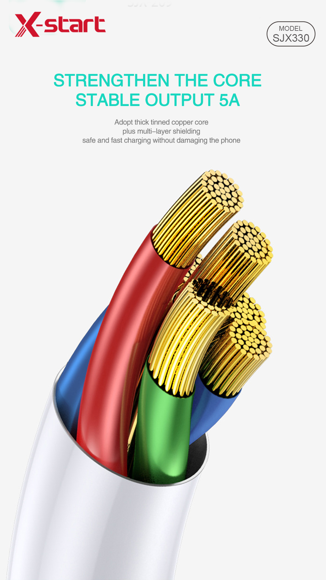 The SJX330 6.0A Fast Charging Cable offers high-speed charging for all devices. Measuring 1.5 meters, it provides flexibility and convenience for daily use. Fully compatible with both Android and Apple devices, it allows you to charge multiple devices simultaneously. Durable and efficient, the SJX330 ensures safe, stable power delivery and fast data transfer wherever you go.